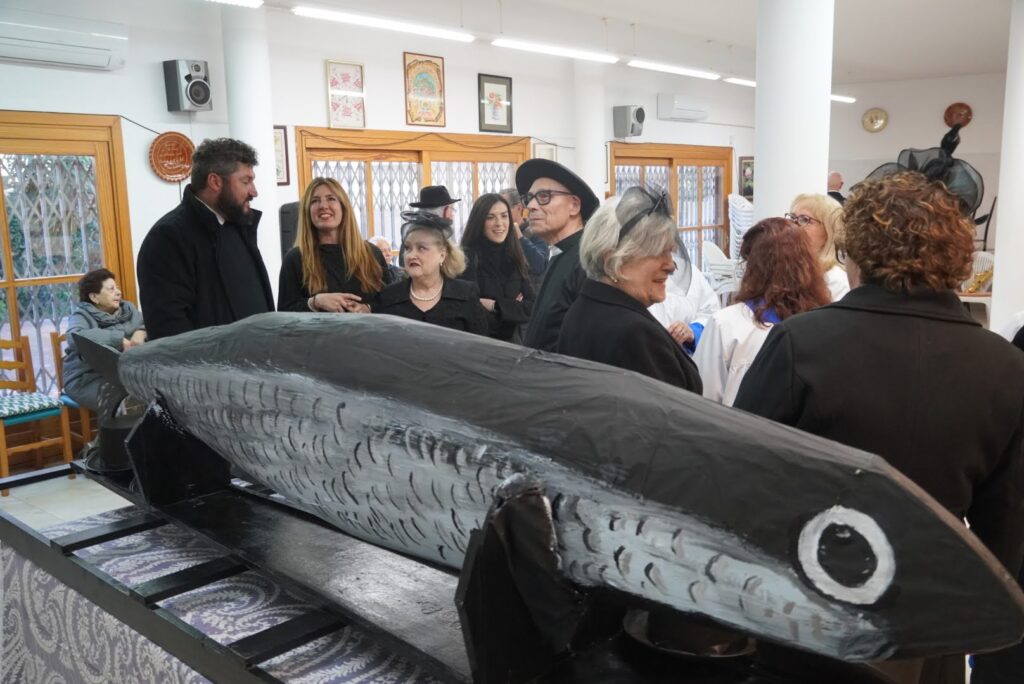 La vetlla de la sardina, de més de dos metres de longitud, s’ha dut a terme al local de l’associació, on les tradicionals ploraneres, juntament amb les autoritats municipals i els veïnats, han retut el seu particular homenatge en to satíric i festiu.