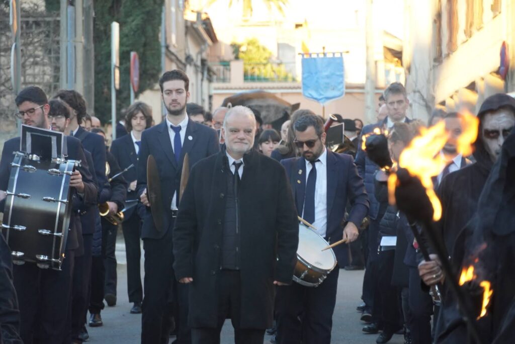 A les sis de l’horabaixa ha arrancat la comitiva fúnebre des d’Es Turó, precedida pels Dimonis de Fang. Darrere ells, els portadors de la sardina, escoltes, escolans, el capellà i la Banda de Música han recorregut els carrers Albert Castell, Jaume Balmes i carrer Major fins arribar a la plaça de Can Flor, on s’ha congregat un nombrós públic.